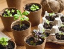 Lončke postavite v pladenj, napolnite z rahlo zemljo za sadike in dodajte semena po navodilih rastline.